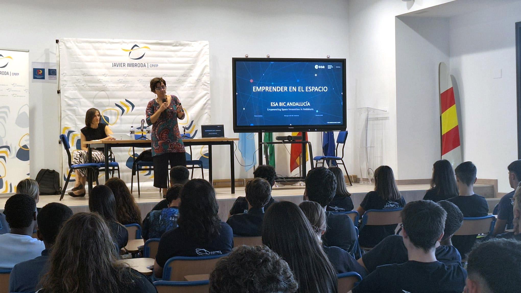 Impartimos una charla ante más de 100 alumnos del Centro Público Integrado de Formación Profesional (CPIFP) Javier Imbroda y celebramos una Jornada de Puertas Abiertas en nuestro centro de Sevilla a la que asistieron estudiantes de la Universidad Loyola Andalucía y la Universidad de Sevilla, además de la Comisión de Espacio del Clúster Andalucía Aerospace